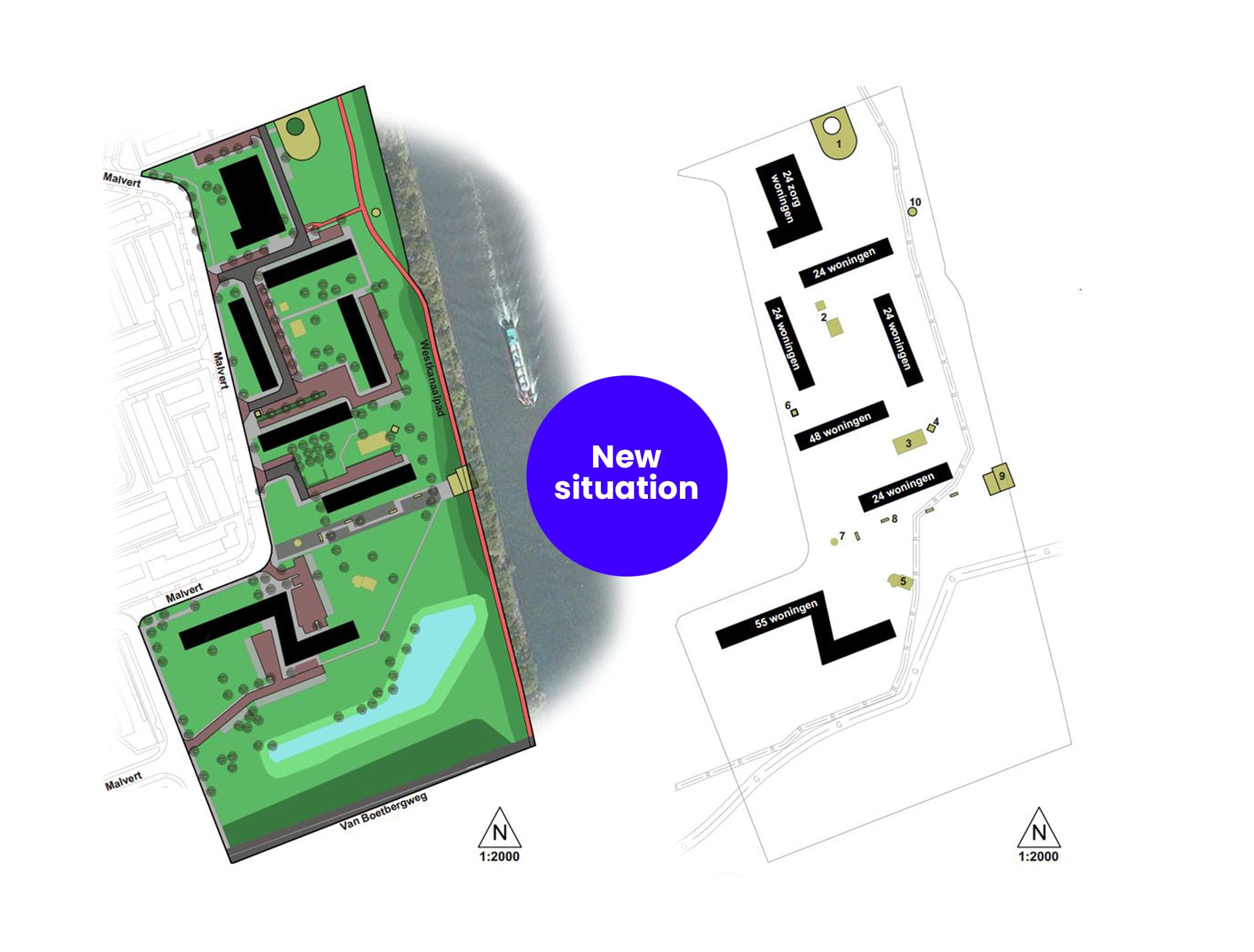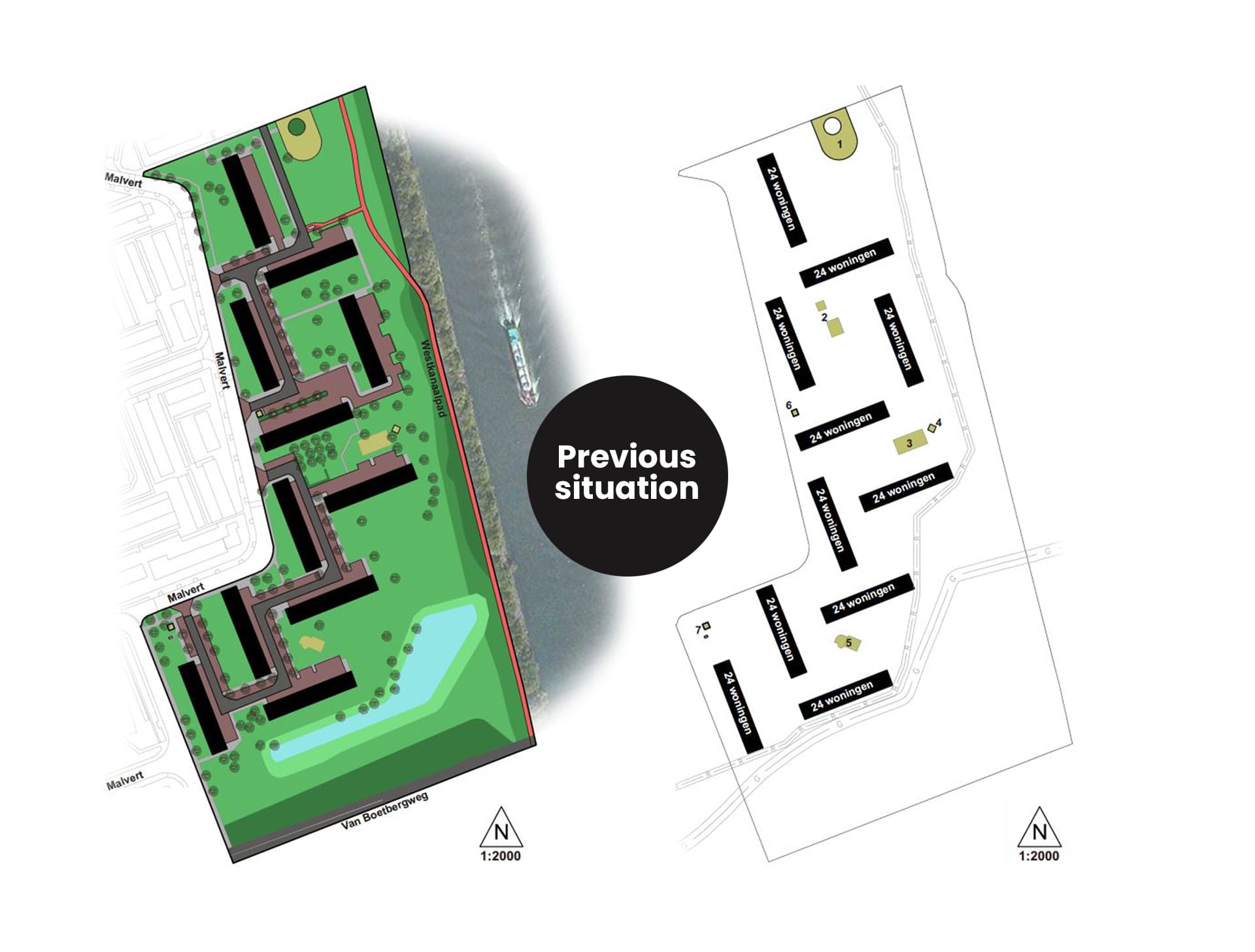 Unfortunately, Malvert’s spatial structure did not match the social development, and the neighborhood fell into disrepair. By demolishing seven of the twelve blocks, the construction was connected to the adjacent residential area. This also created connections with the canal and the adjacent homes. New residential blocks, a care facility and the renovation of the existing buildings resulted in the redevelopment and revitalization of the district.